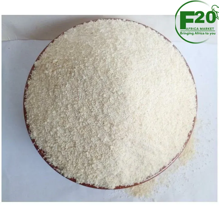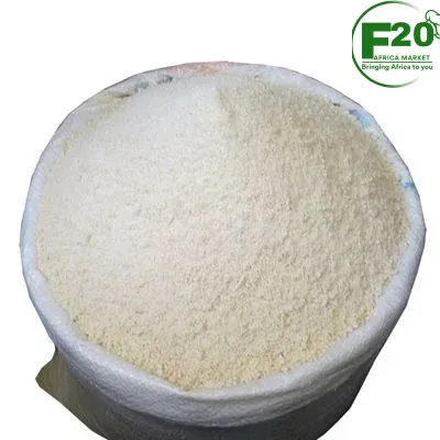 White gari is a granular flour made from fermented and dried cassava, a staple food in many West African countries Iike Cameroon. It’s a creamy-white  flour, with a good source of carbohydrates and fiber.